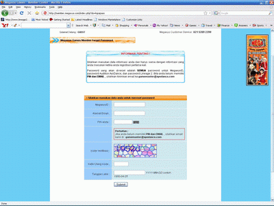 - Silahkan isi data yang diperlukan agar sistem kami dapat membantu kamu untuk mendapatkan password baru kamu. Isi data yang diperlukan dan data yang diisi harus sama seperti data ketika pertama kali registrasi ID. Kemudian klik tombol “Submit”.